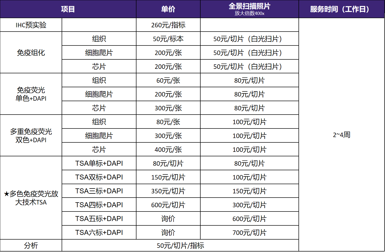 3. 以上价格是石蜡切片基础报价,客户需提供一抗 。所有正式实验开始之前,需要组化验证一下抗体最佳稀释比例及在样本中是否表达。