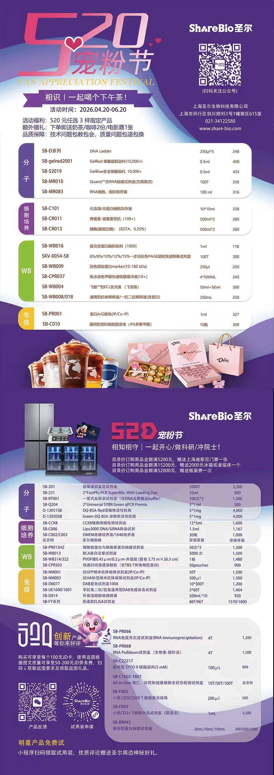 为了宠宠一直支持我们的科研小伙伴,圣尔生物 520 宠粉节正式开启啦!