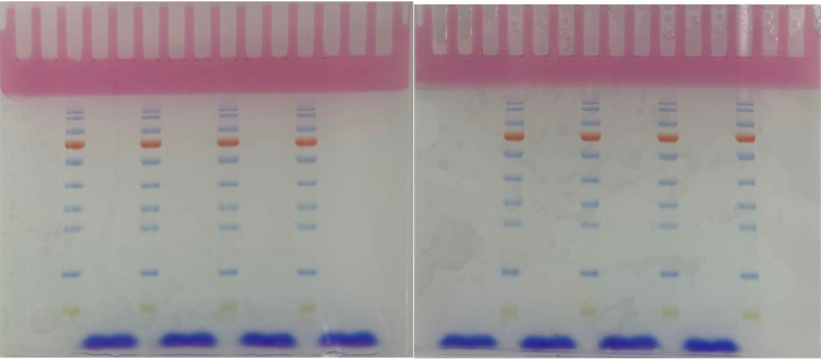 | 产品详情 | 【产品简介】 快速电泳液 (10X SDS-PAGE Rapid Running Buffer ) 适用于传统 Tris-Gly体系的 SDS-PAGE电泳。200V恒压20-30分钟即可完成SDS-PAGE蛋白电泳,可获得蛋白条带锐利的电泳效果。与传统的SDS-PAGE电泳液相比,本快速电泳液可以大幅加快电泳速度,缩短电泳时间,提高实验效率。尤其适合小分子蛋白分离。 【产品特点】 1. 本品对于6%、8%、10%和12%的固定浓度胶,200V恒压电泳,通常20-30 分钟即可能完成电泳,大大缩短了电泳时间,提高实验效率,分离胶浓度提高时,请适当增加电泳时间。 2. 分离效果好。电泳后蛋白条带平整、清晰、细腻、锐利。 3. 不会明显产热,确保电泳条带平整、锐利。 以下为10%的胶,200V,25min条件下使用本产品后的效果图,可供参考。