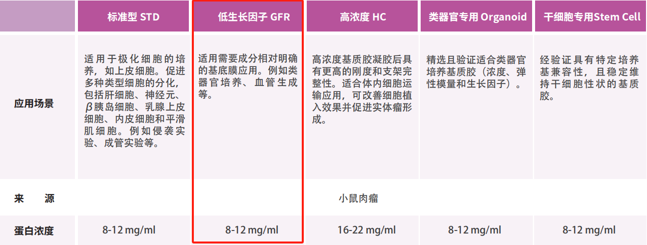 | 英 文 名 | matrigel(Growth Factor Reduced (GFR) Grade, LDEV-free, Phenol Red-free by Default, Phenol Red-containing Available on Request) | ||
