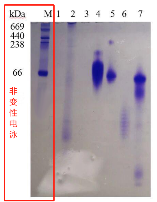 | 产品详情 | 本套装包含非变性胶蛋白电泳的预制胶,电泳缓冲液,上样缓冲液,蛋白marker。本套装适用于酸性蛋白,等电点小于7的非变性蛋白。蛋白等电点可以在网站上进行预测,https://web.expasy.org/protparam/。如果客户蛋白等电点大于7只能用Blue Native胶。 GLASS Gel Hepes-Tris gel 非变性预制胶:圣尔生物的 GLASS Gel Hepes-Tris gel 是一款安全、快捷、高性能的预制聚丙烯酰胺凝胶,常用于 PAGE 和 Western blot 检测。 电泳时间短,在 150V 电压下, 电泳 40-50 分钟即可完成,采用玻璃胶板,有效减少蛋白非特异性吸附,使蛋白条带更为敏锐,清晰。兼容市场上主流的 mini 电泳槽,如 Bio-Rad, Invitrogen, 天能和君意东方等。提供多种浓度的均一胶和梯度胶。均一胶可选浓度:6%,8%,10%,12%,15%。梯度胶可选浓度:4-15%,4-20%,8-20%,也可以提供产品定制。 电泳缓冲液:Hepes-Tris Running Buffer 是适用于 Hepes-Tris 体系的电泳缓冲液。本产品以粉末形式提供,共 10 小包,每小包可配制 500mL 1X 工作液。取 1 小包粉剂,倒入一洁净的烧杯中,加入蒸馏水到约 400mL,溶解。在量筒中定容到 500mL,即为 1X 工作液。未用完的电泳液可室温保存,通常室温可保存 2-3 天,4℃可保存 1-2 周。 上样缓冲液:5X Native-PAGE 蛋白上样缓冲液(Protein Sample Loading Buffer for Native-PAGE, 5X ,是两种经过改良的以溴酚蓝为染料,5 倍浓缩的蛋白上样缓冲液。可以用于常规的 Native-PAGE 蛋白样品的上样。本产品不含 SDS 且不含 DTT属于非变性非还原性蛋白上样缓冲液,请依据样品类型选择最适的蛋白上样缓冲液。使用方法跟常规 loading 一样,即按照每 4μL 蛋白样品加入 1μL 上样缓冲液(5X)的比例,混合蛋白样品和上样缓冲液(5X),直接上样到 PAGE 胶加样孔内。 非变性电泳蛋白 Marker:本产品含有4种高纯蛋白质干粉混合物,总蛋白含量为 160 μg。分子量范围为 66kDa-669kDa,经过非变性电泳后,用考马斯亮蓝染色后可以得到分布均匀、密度相近的4条带。 非变性聚丙烯酰胺凝胶和变性SDS-PAGE电泳在操作上基本上是相同的,只是非变性聚丙烯酰胺凝胶的配制和电泳缓冲液中不能含有变性剂如SDS等。一般蛋白进行非变性凝胶电泳要先分清是碱性还是酸性蛋白。分离碱性蛋白时候,要利用低pH凝胶系统,分离酸性蛋白时候,要利用高pH凝胶系统。 酸性蛋白通常在非变性凝胶电泳中采用的pH是8.8的缓冲系统,蛋白会带负电荷,蛋白会相阳极移动;而碱性蛋白通常电泳是在微酸性环境下进行,蛋白带正电荷,这时候需要将阴极和阳极倒置才可以电泳分离酸性蛋白。【本货号适用于酸性蛋白,不适用于碱性蛋白】 |